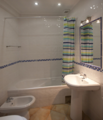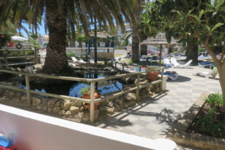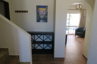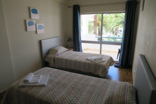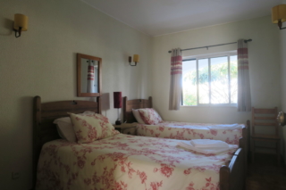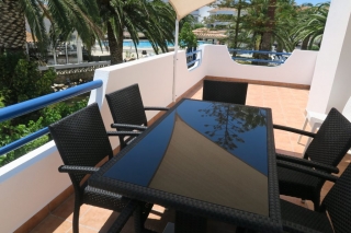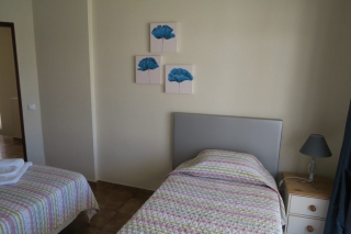 Situated on the two upper floors overlooking the pool and gardens.  The lower floor has an equipped kitchen, toilet, lounge/dining room and balcony with table and chairs.  The upper floor has a bathroom, double and twin bedroom and balcony.   Suitable for up to 4 adults and 2 children.  (Small fold out beds can be hired for up to 11 years only).   Bright spacious apartments, approx. 80m2.